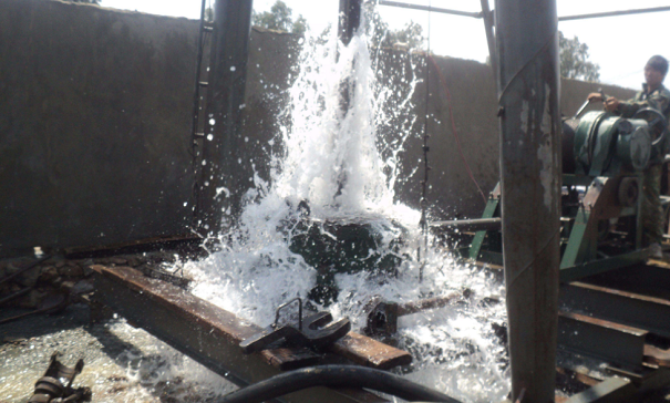 2、鑿孔:該工程鉆孔所一眼使用的是CZ30型沖擊鉆機(jī)、一眼使用圓心鉆機(jī)。鉆進(jìn)方法為采用泥漿護(hù)壁鉆進(jìn),終孔后,用直徑10毫米鋼筋加鉆擴(kuò)孔,把護(hù)壁泥漿清除,達(dá)到水系通暢。